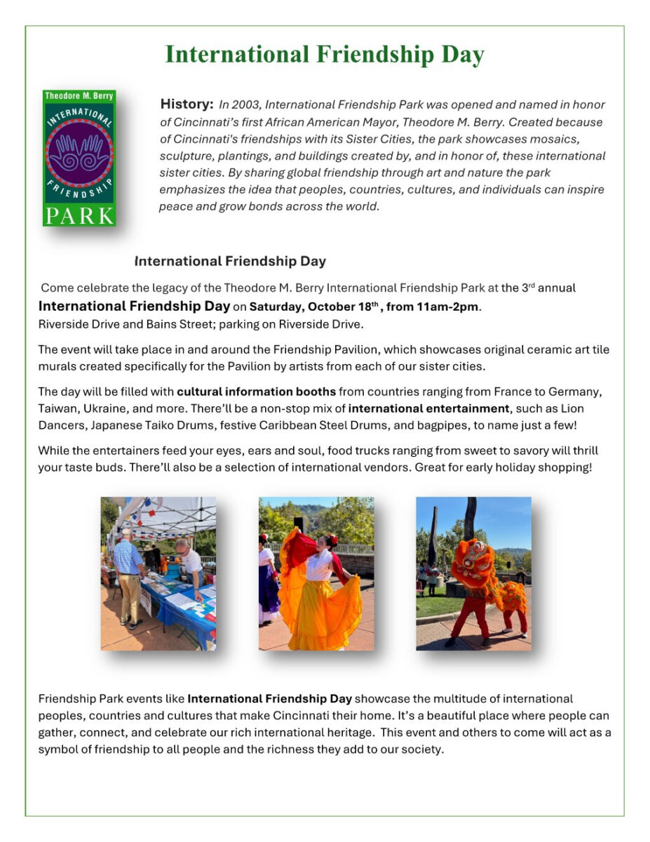 Celebrate the legacy of the Theodore M. Berry’s International Friendship Park at the 3rd annual International Friendship Day. The day will be filled with cultural information booths from countries ranging from France to Germany, Taiwan, Ukraine, and more. There’ll be non-stop international entertainment, a range of food trucks, and a selection of international vendors.
