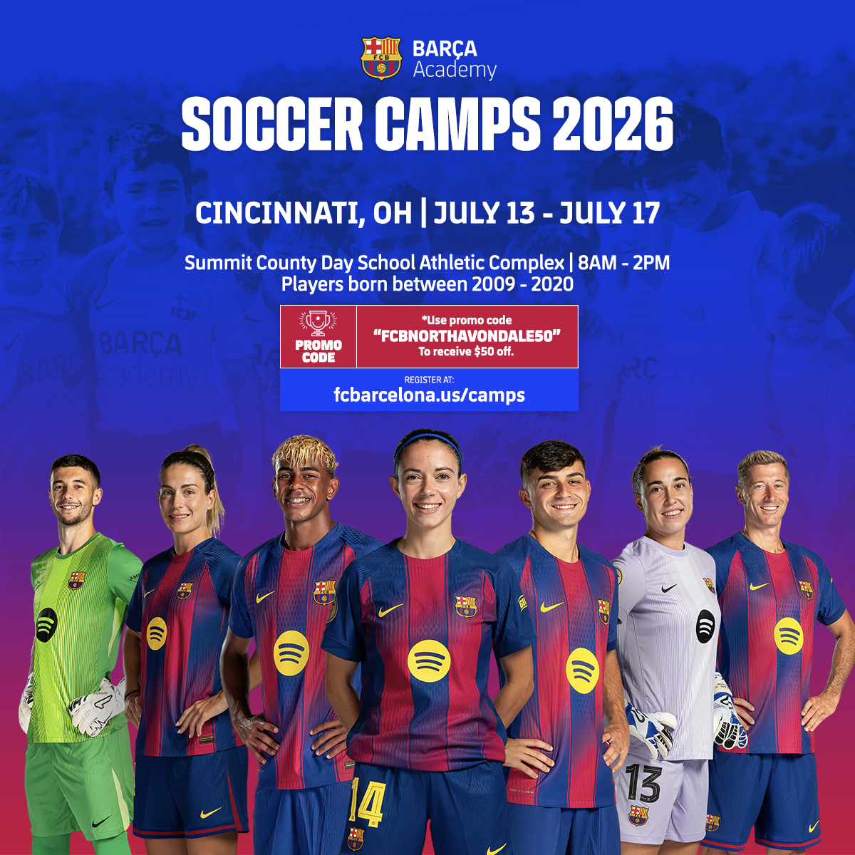 We will be hosting an FC Barcelona Soccer Camp in Cincinnati, OH, from July 13th to July 17th. The camp will take place at Summit County Day School Athletic Complex, running from Monday to Friday from 8 AM to 2 PM.