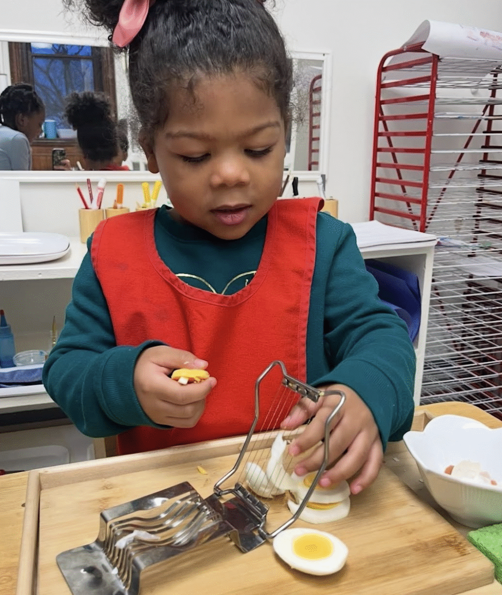 Fostering a child’s natural desire for independence is a core tenet of a Montessori education. That desire is fed by showing children (at every age) ways they can take care of themselves and giving them the opportunity to plan their work.