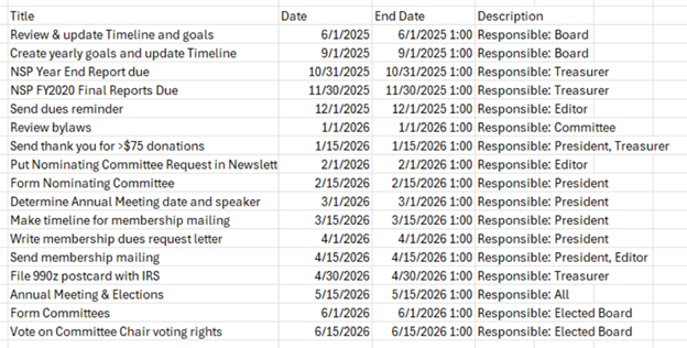 Nominating Committee for selection of new board members (Pres., Treasurer and Recording Secretary)
